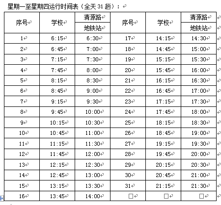 4.周六日8:20清源路地铁开往大兴校区的摆渡车,现调整发车时间为8:10。