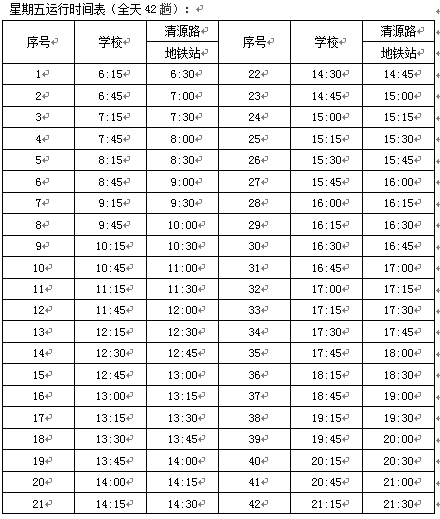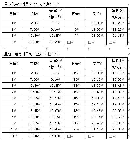 4.周六日8:20清源路地铁开往大兴校区的摆渡车,现调整发车时间为8:10。